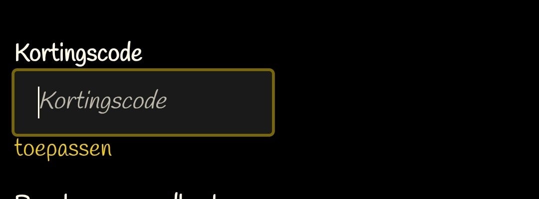 Kortingscode invullen: Vul eventueel jouw unieke code in. Klik vervolgens op toepassen.